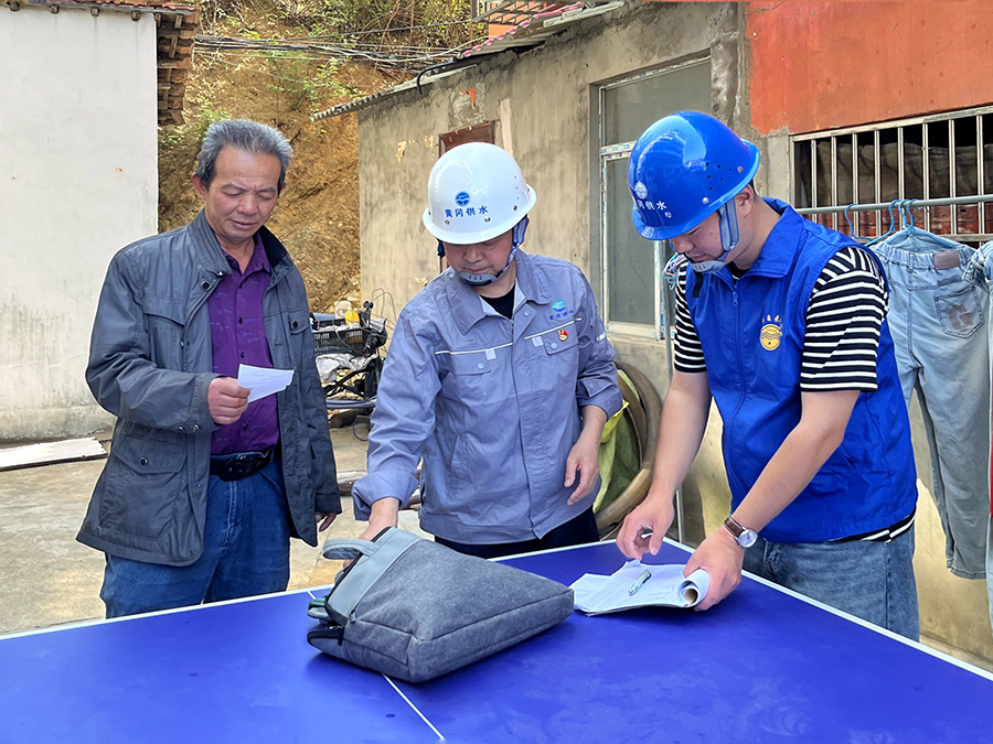 除了現(xiàn)場宣傳外,黨員志愿者們還充分發(fā)揮專業(yè)優(yōu)勢,攜帶專業(yè)檢測設(shè)備,分組對石頭坳村開展細(xì)致的用水設(shè)施排查工作。他們俯身認(rèn)真檢查水表井、仔細(xì)聆聽管道異響、嚴(yán)謹(jǐn)測試水龍頭壓力,不放過任何一個可能存在的用水隱患。對于存在問題的智能遠(yuǎn)傳水表,志愿者們迅速為住戶更換新表。此外,他們還主動為貧困住戶排查用水隱患,檢修水表,更換老化閥門,提供“一對一”服務(wù),切實解決了村民們的用水難題,以實際行動為村民的用水安全保駕護(hù)航。